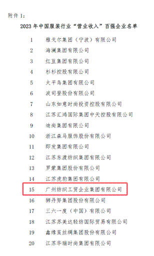 7月22日,《2023年中國(guó)服裝行業(yè)百?gòu)?qiáng)企業(yè)》榜單發(fā)布,紡織公司連續(xù)三年登榜,位列2023年中國(guó)服裝行業(yè)“營(yíng)業(yè)收入”百?gòu)?qiáng)企業(yè)第15名!